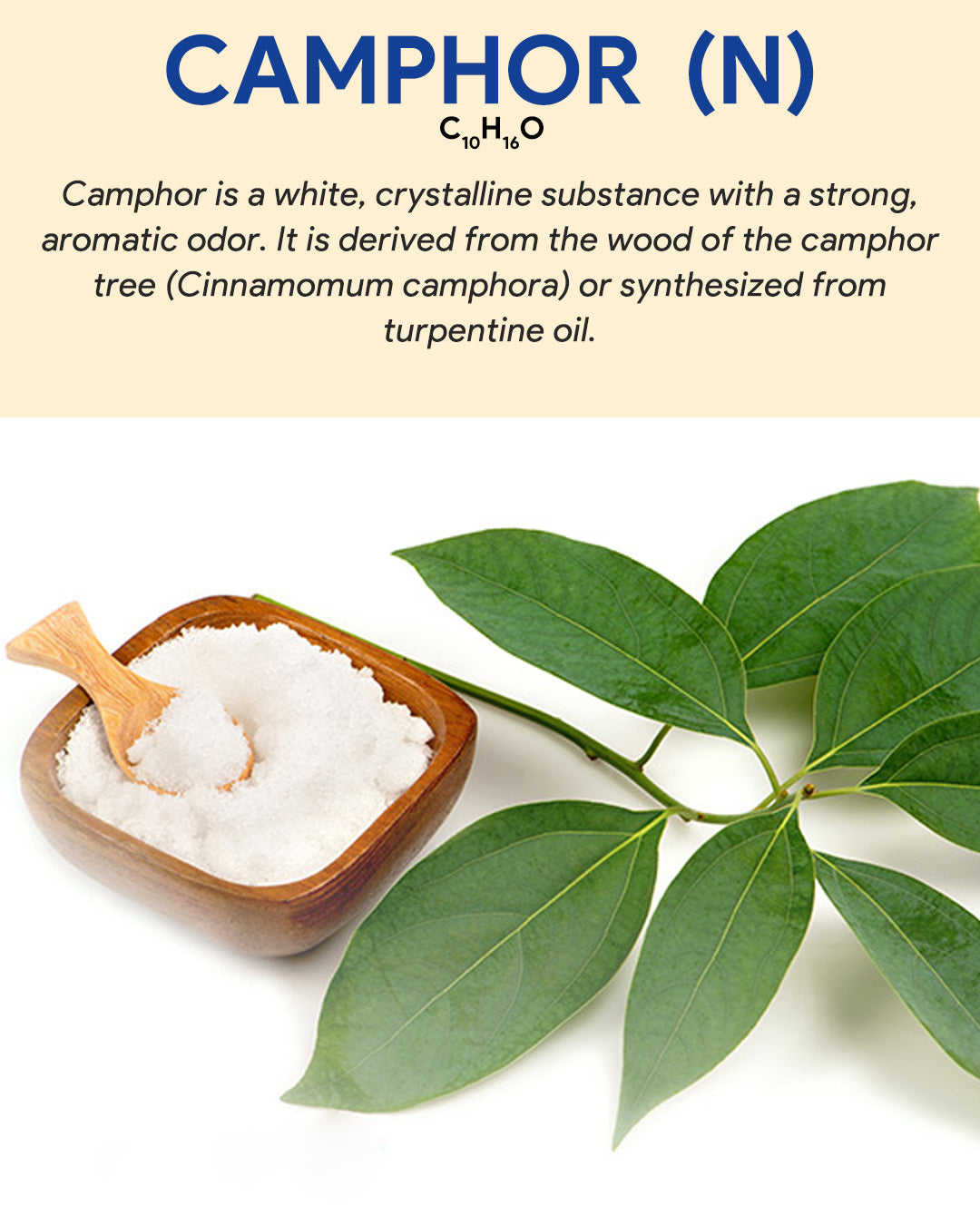 Camphor Oil (Natural) is derived from the wood of the camphor tree and has a strong, medicinal aroma with cooling properties. It's commonly used in topical preparations for its analgesic and anti-inflammatory effects, as well as in aromatherapy for respiratory support.