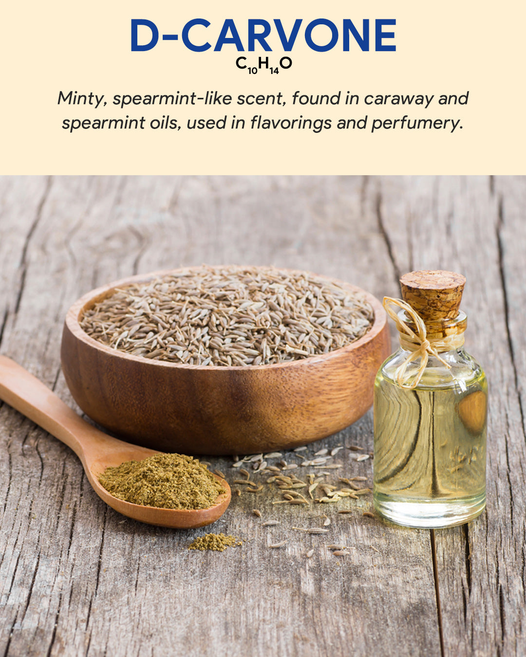 D-Carvone is a natural organic compound with a minty, spearmint-like aroma. It's commonly found in essential oils of caraway and spearmint and is utilized in the flavor and fragrance industry for its refreshing scent and flavor-enhancing properties.