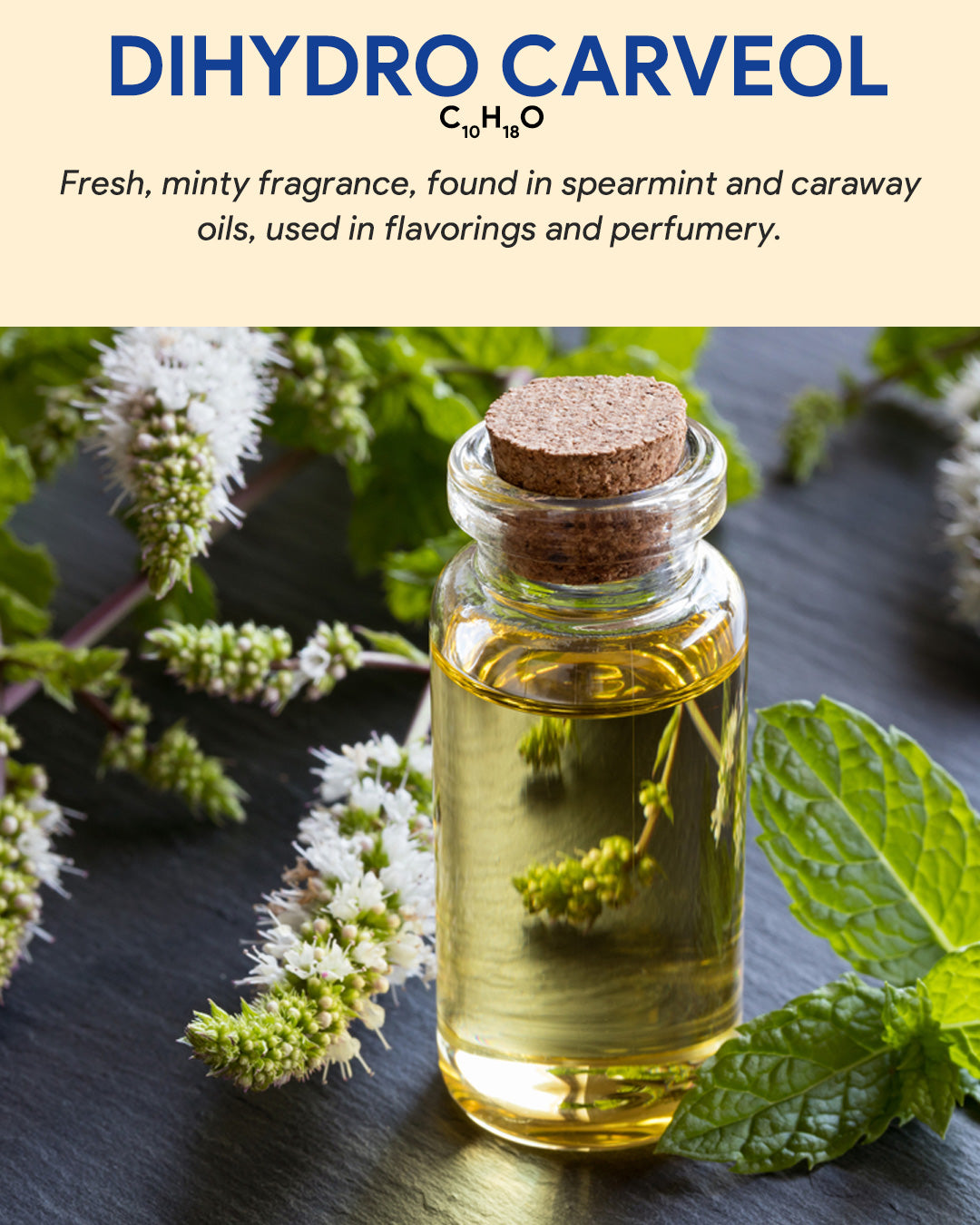 Dihydro Carveol is a natural organic compound with a minty, cooling aroma reminiscent of spearmint. It's commonly found in essential oils of mint and is used in the flavor and fragrance industry for its refreshing scent and flavor-enhancing properties.
