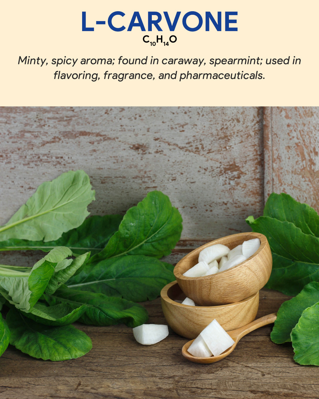 L-Carvone is a natural organic compound with a minty, spearmint-like aroma. It's commonly found in essential oils of caraway and spearmint and is used in the flavor and fragrance industry for its refreshing scent and flavor-enhancing properties.